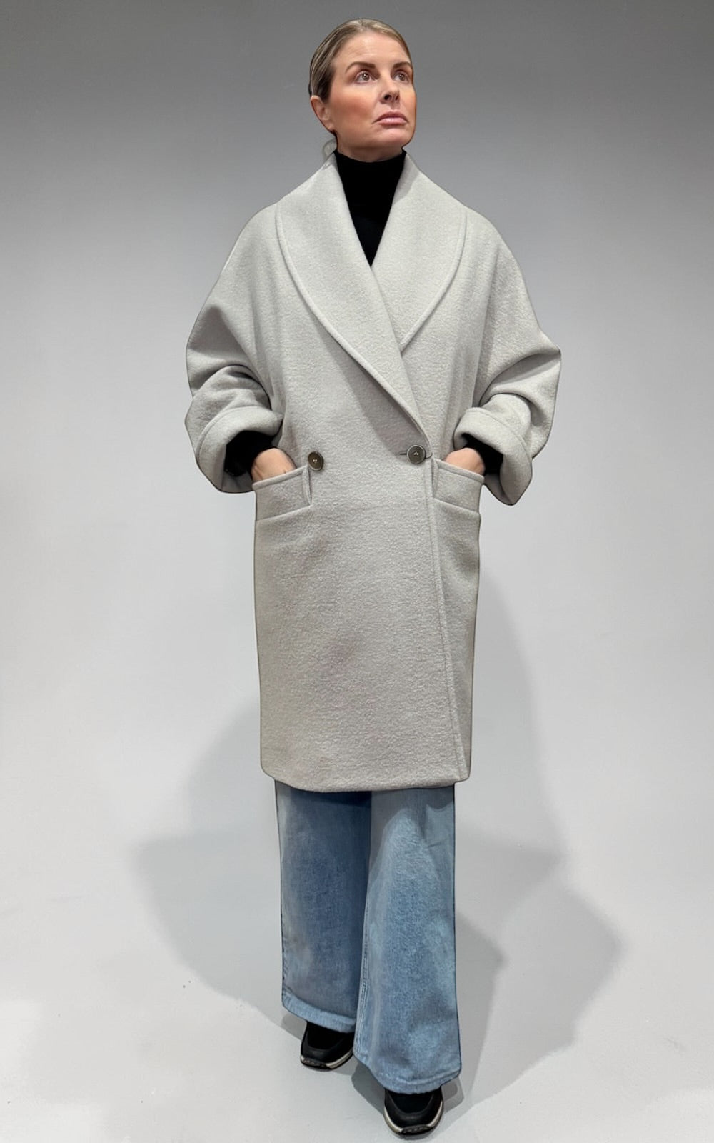 Enveloppez-vous dans l'élégance intemporelle de ce manteau oversize en laine bouilli. Conçu pour ceux qui apprécient le confort sans compromis sur le style, sa silhouette généreuse et son col châle raffiné créent une allure sophistiquée et décontractée. Confectionné entièrement au Canada avec de la laine bouilli de qualité, ce manteau offre une chaleur exceptionnelle et une durabilité remarquable. La coupe ample permet une liberté de mouvement tout en conservant une ligne moderne et flatteuse. Parfait pour les journées fraîches, il se marie facilement avec vos tenues du quotidien pour un look à la fois chic et accessible. Style 2286