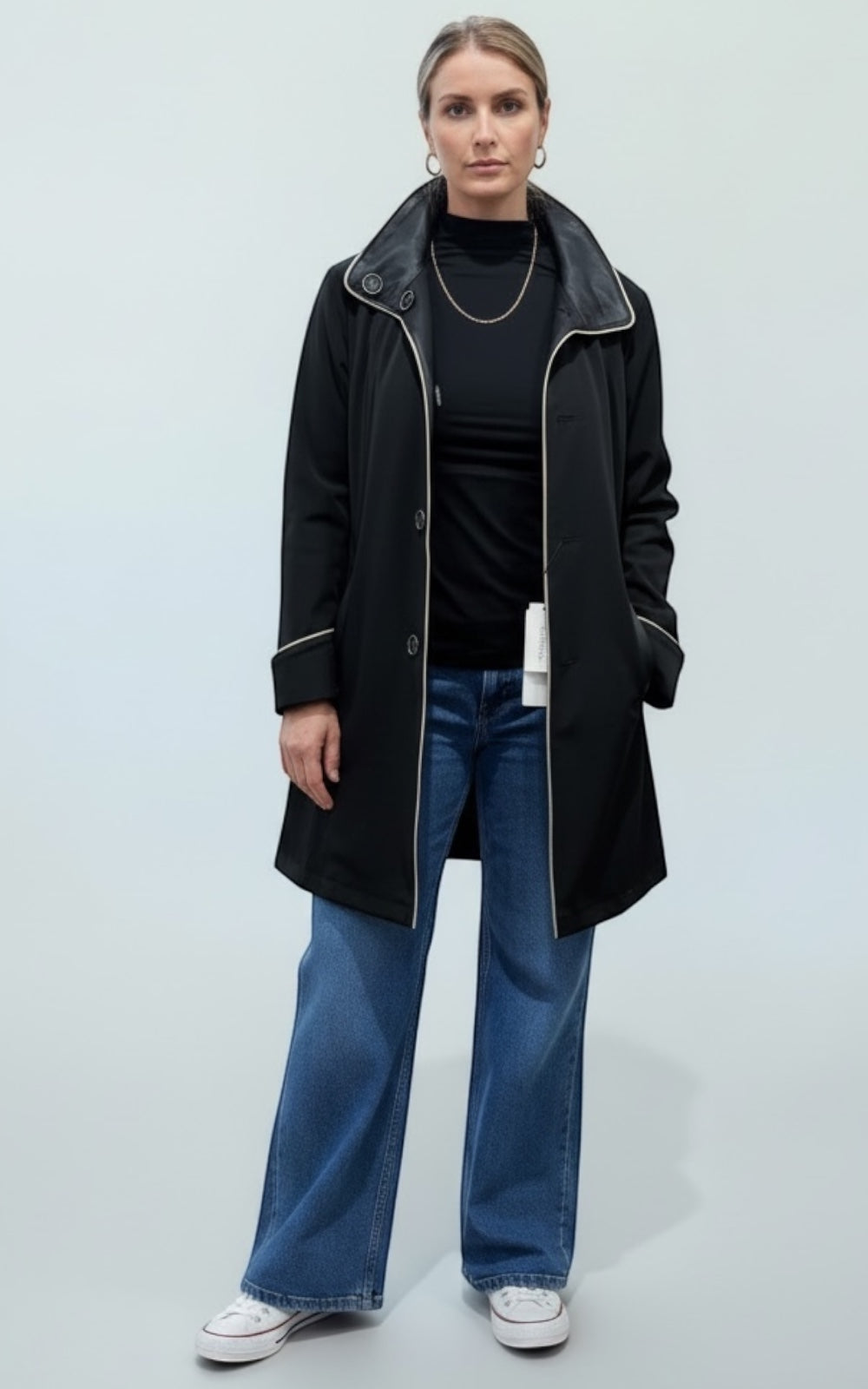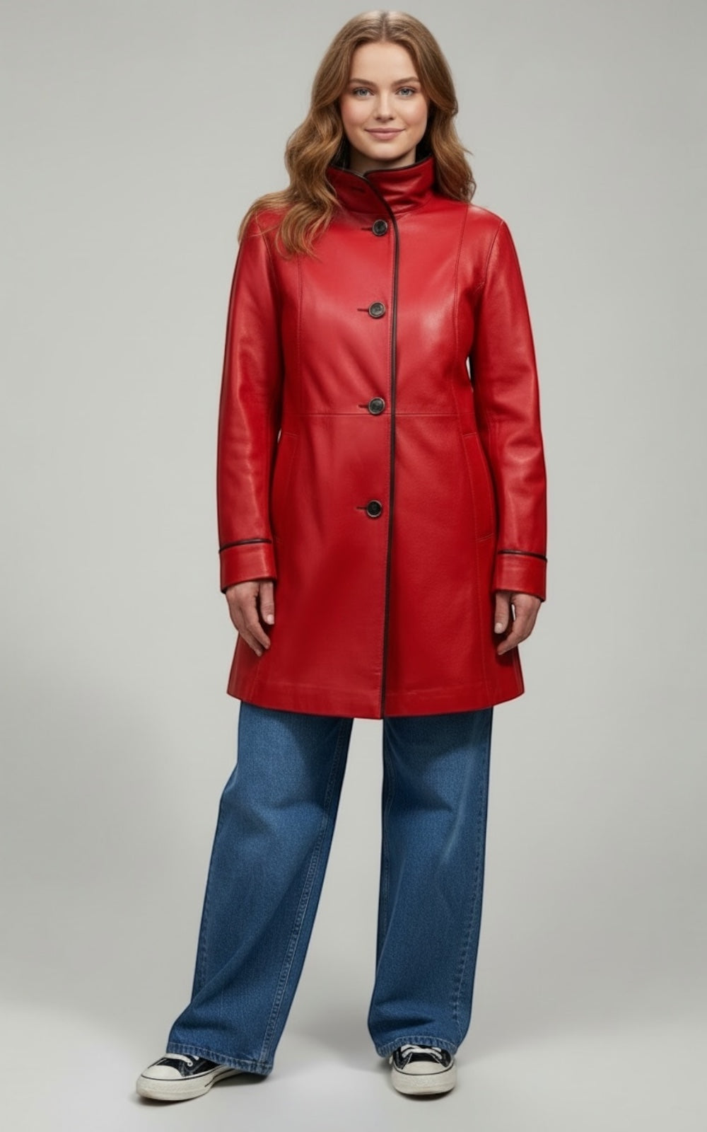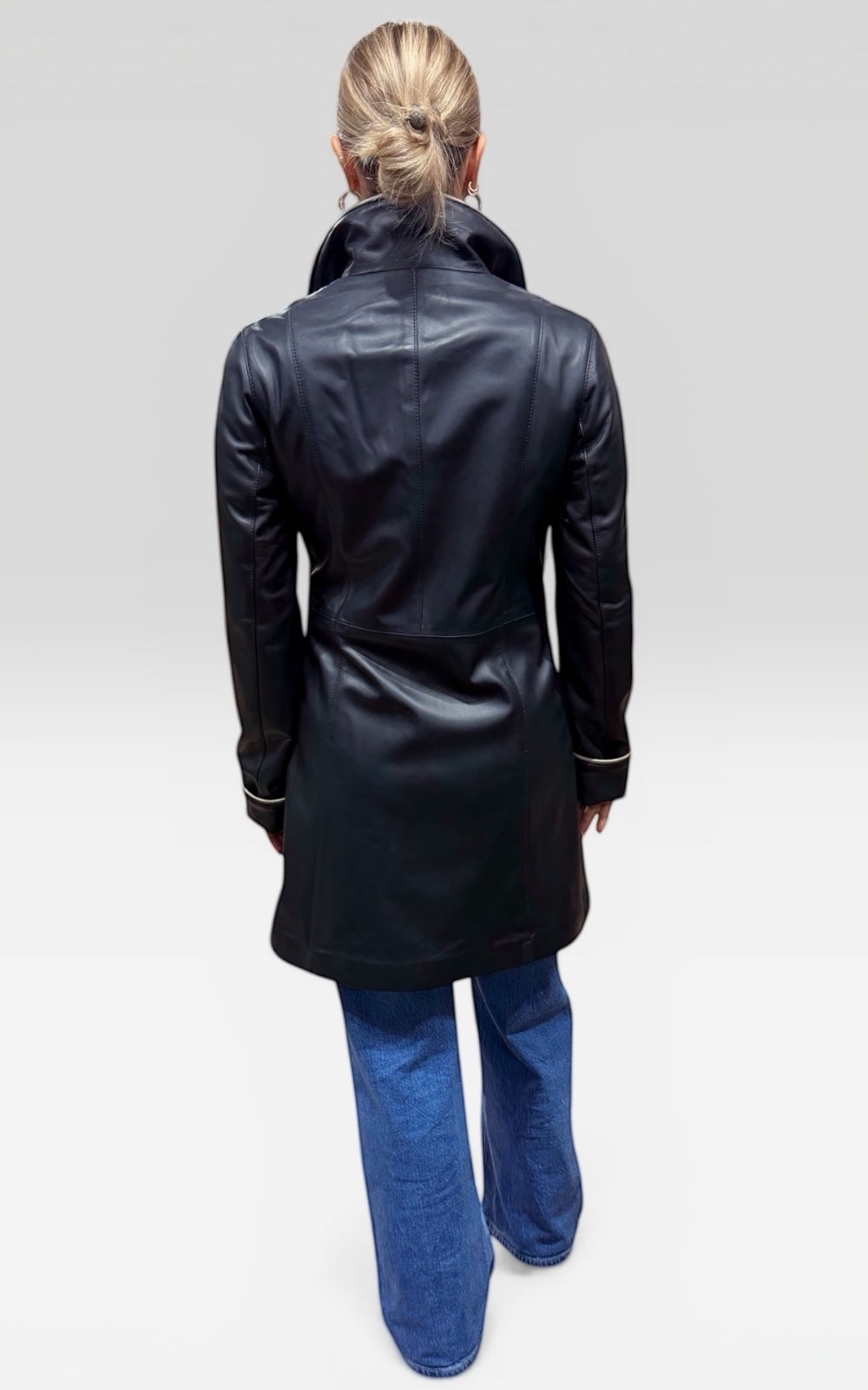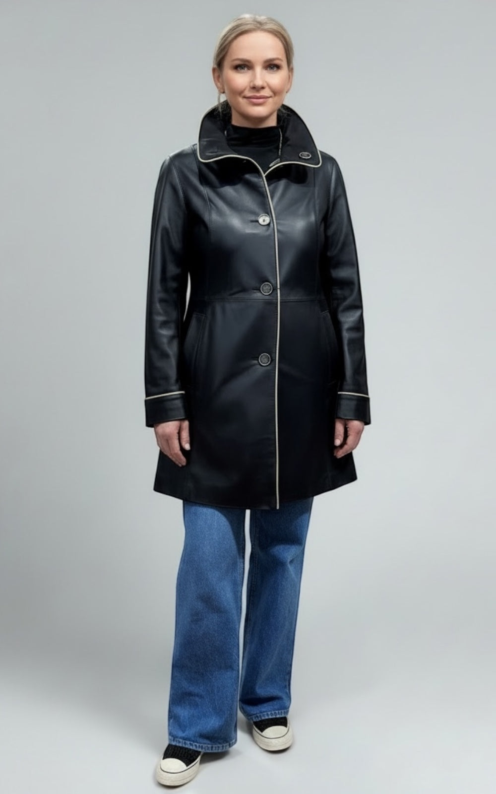 Le Manteau Pamela en cuir d'agneau souple allie élégance et praticité. Coupe semi-ajustée, réversible et imperméable, il vous accompagne confortablement de l'automne à l'hiver. Style Pamela